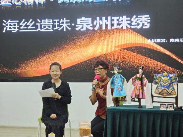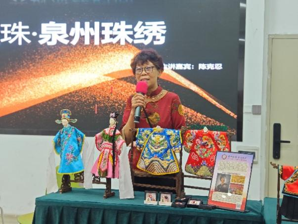 【纺织服装学院】海丝大讲堂“非遗之光,匠心传承” ——泉州珠绣省级代表性传承人陈克忍来校讲座