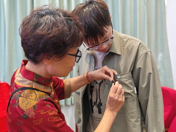 接下来,张福良院长与陈克忍老师共同揭开福建省非物质文化遗产泉州珠绣制作技艺“泉州纺织服装职业学院传承基地"牌匾。张院长表示,此次活动是学校“非遗进校园”系列活动的重点项目,旨在通过大师引领,增强青年学子的文化认同感,为传统工艺振兴注入青春力量。