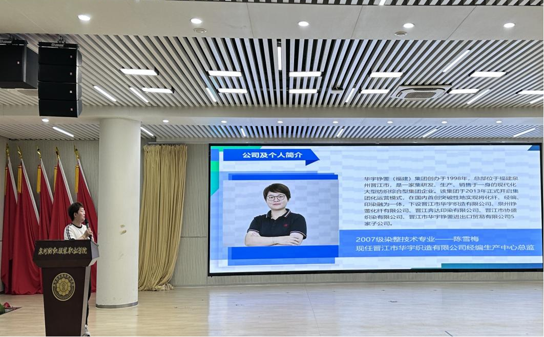 2010届染整技术专业校友陈雪梅,现任晋江市华宇织造有限公司经编生产中心总监
