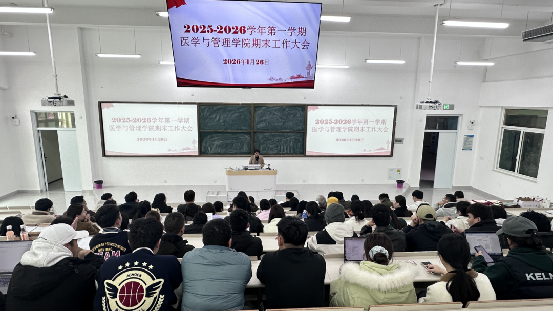 2026年1月26日,医学与管理学院召开2025-2026学年第一学期期末工作大会。会议全面回顾本学期各项工作成效,表彰先进典型,部署下学期重点任务,凝聚全院共识,为学院高质量发展谋篇布局。