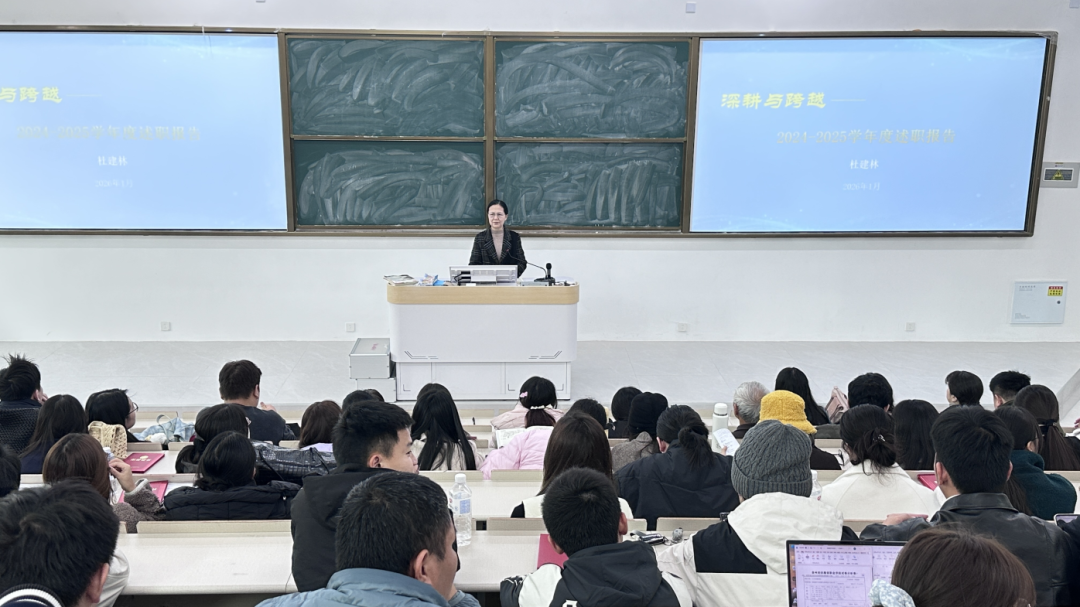 最后,杜院长作本学期工作总结及下学期工作部署。她围绕“四抓”工作思路,系统回顾了本学期学院发展成果:一是抓政治思想,始终把党的建设摆在首位,确保学院各项工作沿着正确方向前进;二是抓“五金”建设,聚焦核心能力提升,夯实学院发展硬支撑;三是抓协同育人,深化校地、校企合作,构建全方位育人格局;四是抓安全维稳,筑牢校园安全防线,保障学院各项工作平稳运行。同时,杜院长对全体教职工提出“五讲”要求,强调要讲政治、守初心,讲团结、聚合力,讲学习、强本领,讲创新、求突破,讲纪律、树形象,以过硬作风推动学院事业再上新台阶。